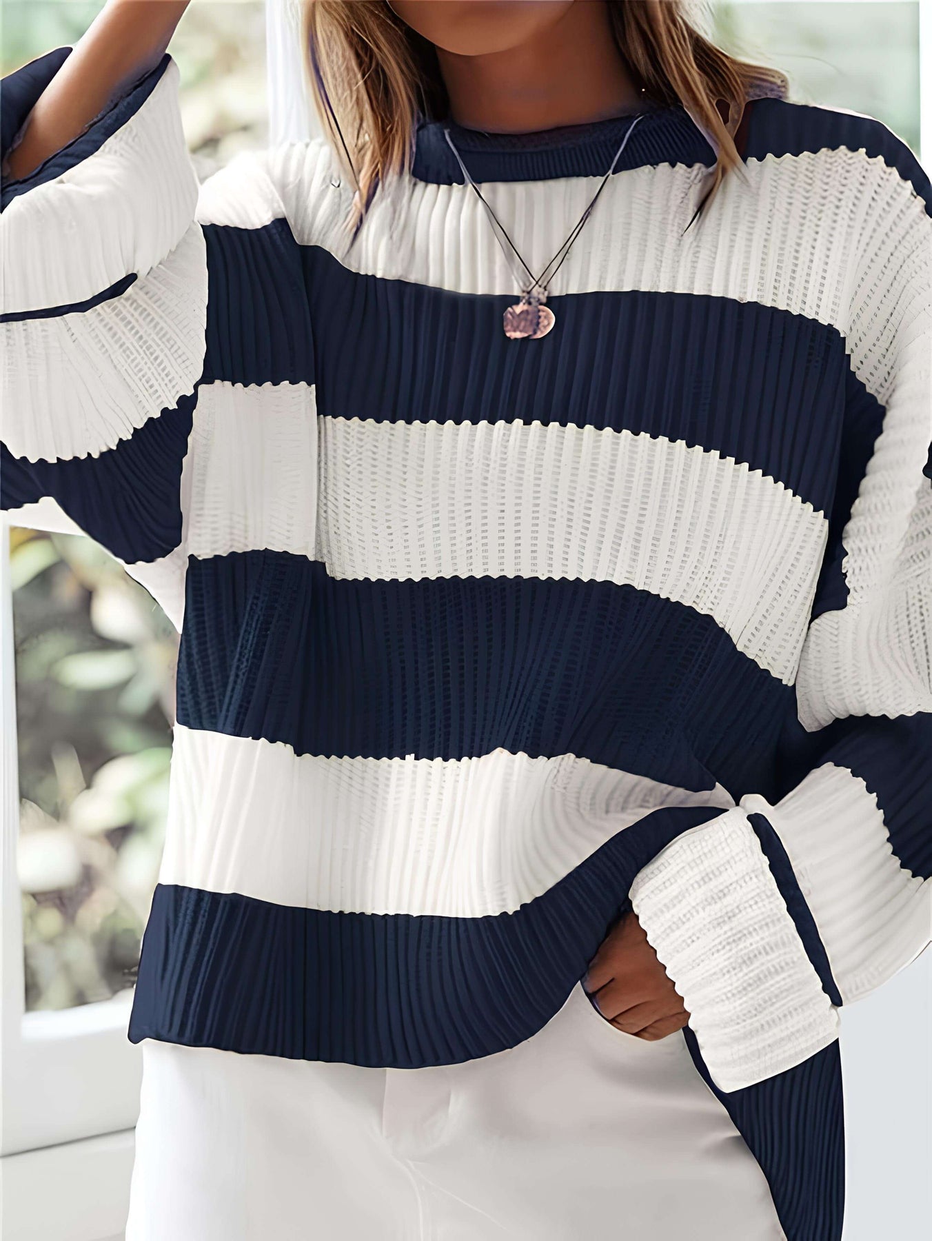 Engedd meg magadnak, hogy egy meleg és egyszerű érzés öleljen körül. A Dafne a csíkos pulóver, amely ötvözi a modern dizájnt, klasszikus vonalakat és egy puhaságot, amely végigkísér a nap folyamán.