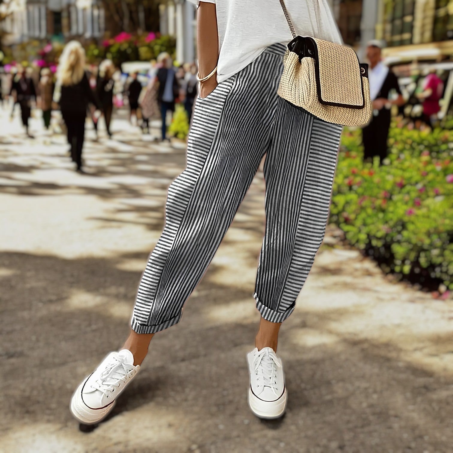 Besoin d’un pantalon fluide qui vous suit partout sans compromis sur le style ? Felicia vous enveloppe dans une matière respirante, une coupe décontractée mais soignée, et un motif rayé intemporel qui sublime chaque silhouette.